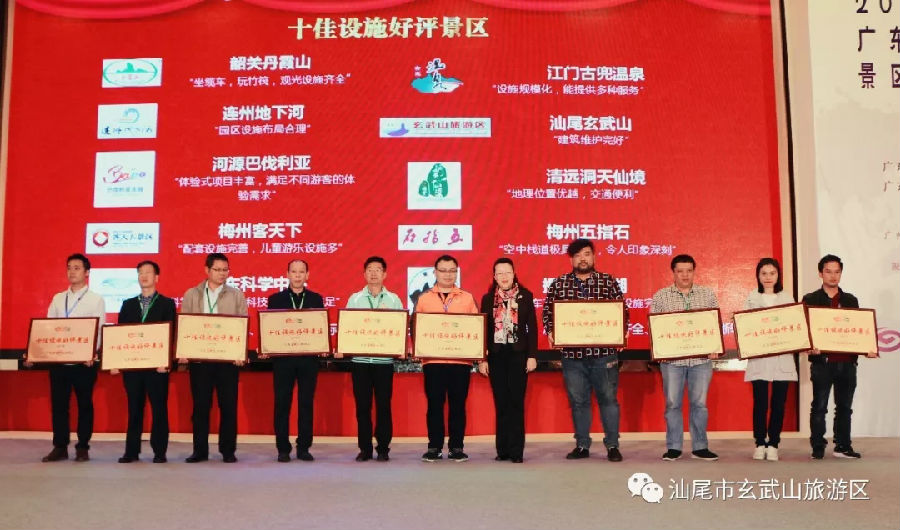 会议为广东省旅行社行业企业100强、广东省十佳环境好评景区、广东省十佳设施好评景区、广东省十佳服务好评景区、广东省十佳综合好评景区的名单进行了公布和颁奖。其中,玄武山旅游景区获“广东省十佳设施好评景区”称号。