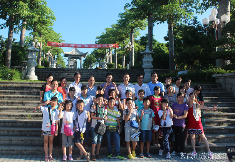 图为8月25日,“人文岭南少年行”团队在国家4级玄武山旅游景区合影