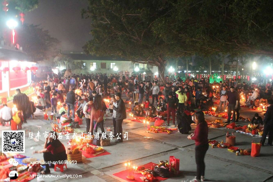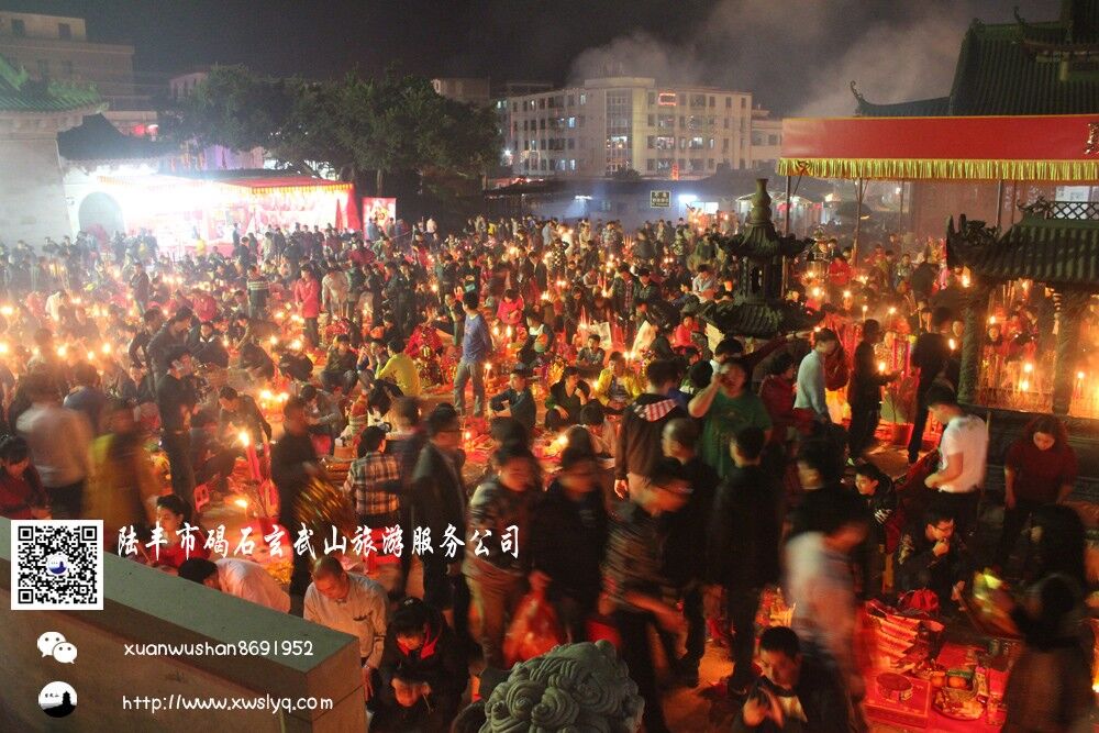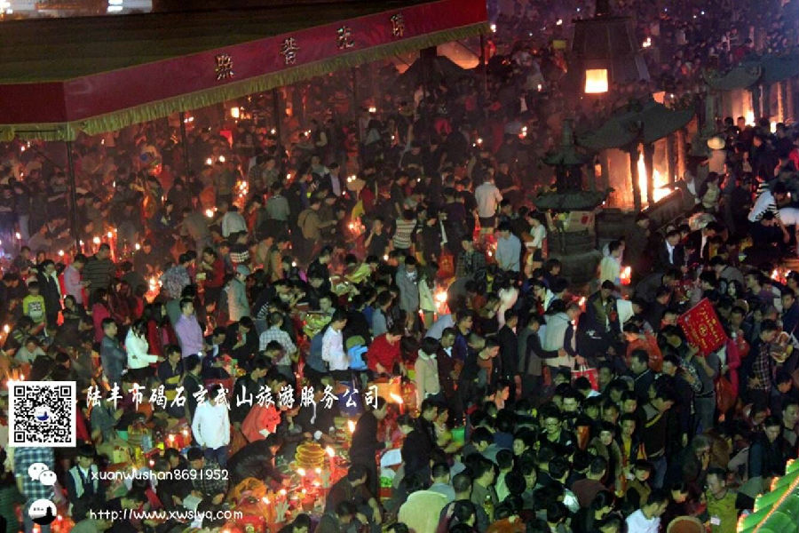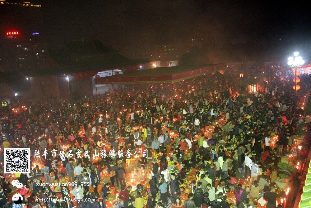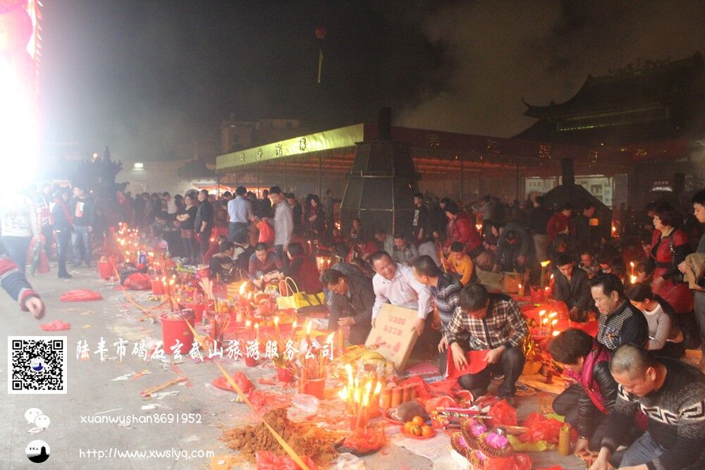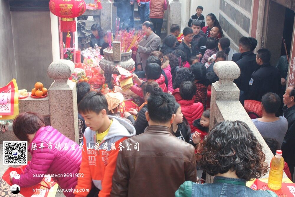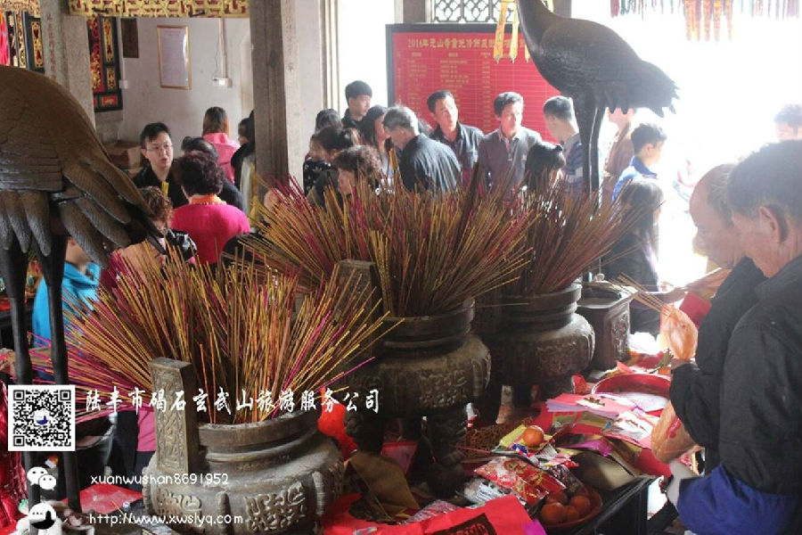 从正月初三开始,本镇及外方香客云集玄武山,客如潮涌,使整个玄武山汇成人山人海。