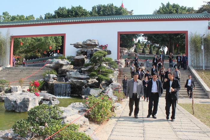 各位领导、各旅行社、星级饭店总经理及代表们在玄武山旅游区九龙壁前合影。