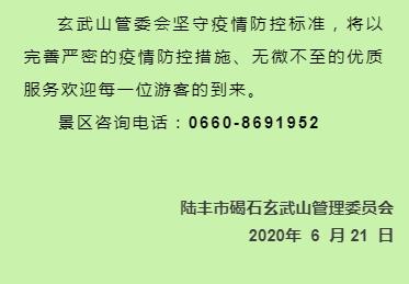 【公告】玄武山旅游区于2020年 6 月21 日开放!