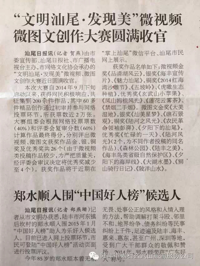 由市委宣传部、汕尾日报社、市广播电视台主办,市网络文化协会承办的“文明汕尾?发现美”微视频、微图文创作大赛近日圆满收官。