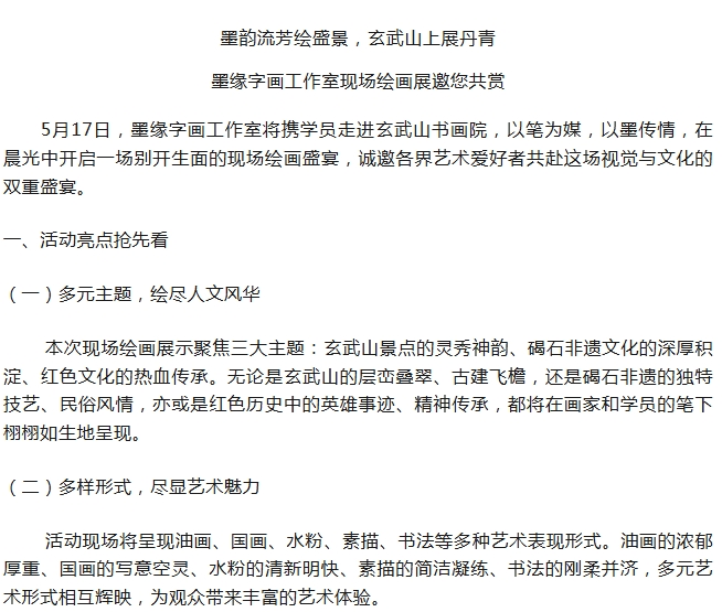 墨韵流芳绘盛景,玄武山上展丹青——墨缘字画工作室现场绘画展邀您共赏